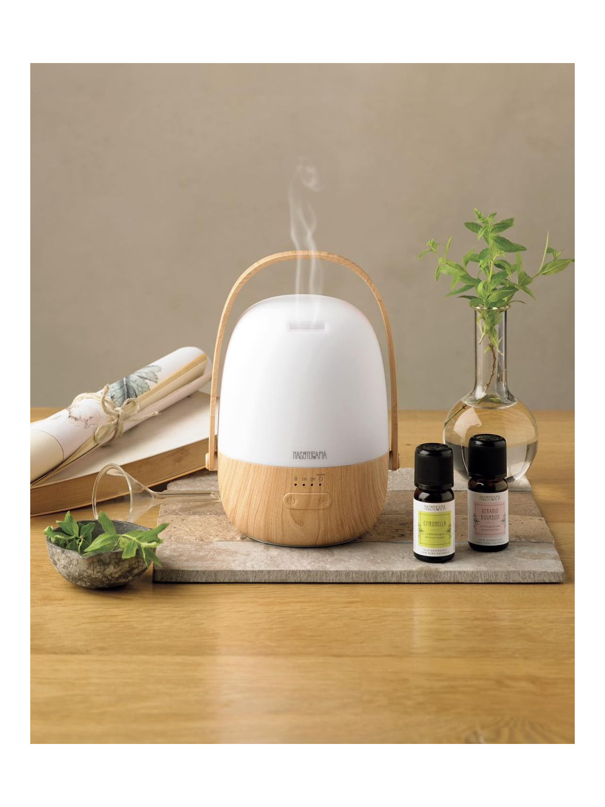 Diffusore ad ultrasuoni con batteria ricaricabile. La diffusione avviene mediante ultrasuoni che generano un vapore freddo. Un sistema ideale per nebulizzare gli oli essenziali in modo da lasciarne inalterate le proprietà e diffonderle in modo omogeneo ed uniforme nell’ambiente.