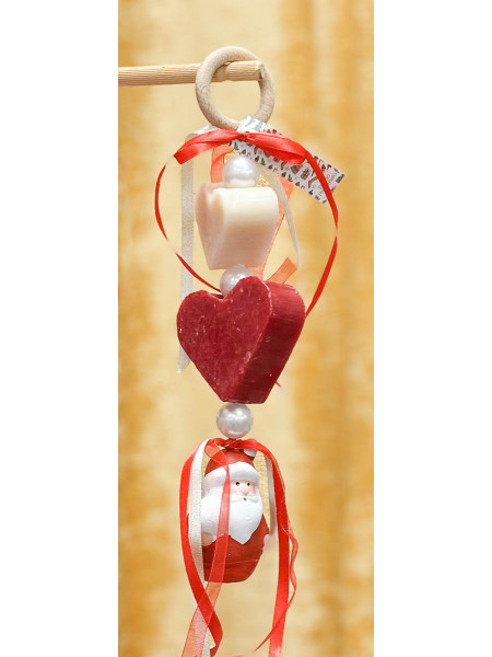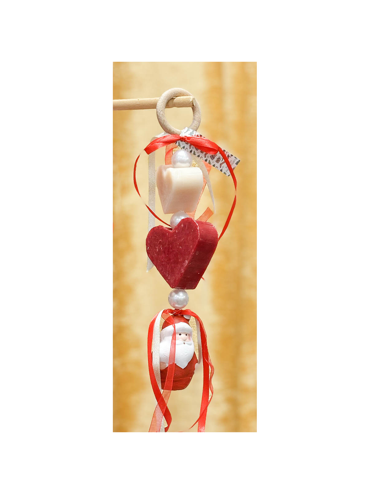 Tralcio di saponette profumate dalla Collezione "Christmas Edition 2024" di Bolgherello. Decoro Babbo Natale.