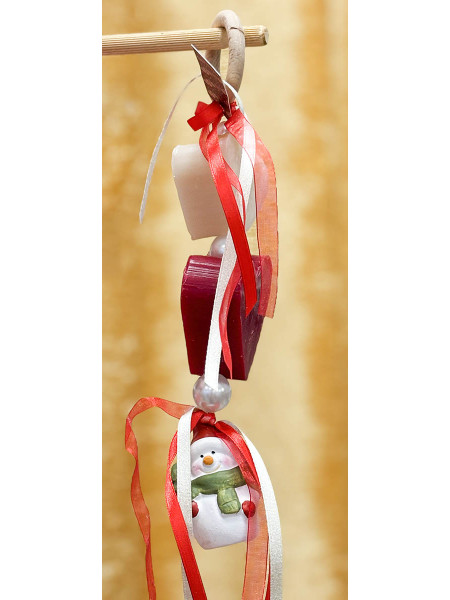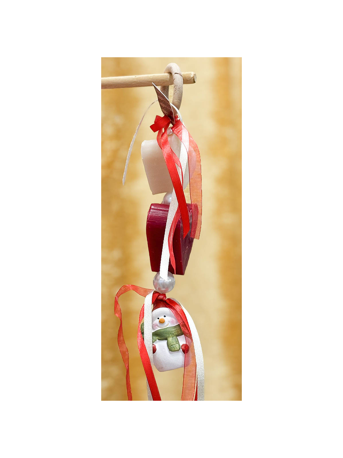 Tralcio di saponette profumate dalla Collezione "Christmas Edition 2024" di Bolgherello. Decoro Pupazzo di neve.