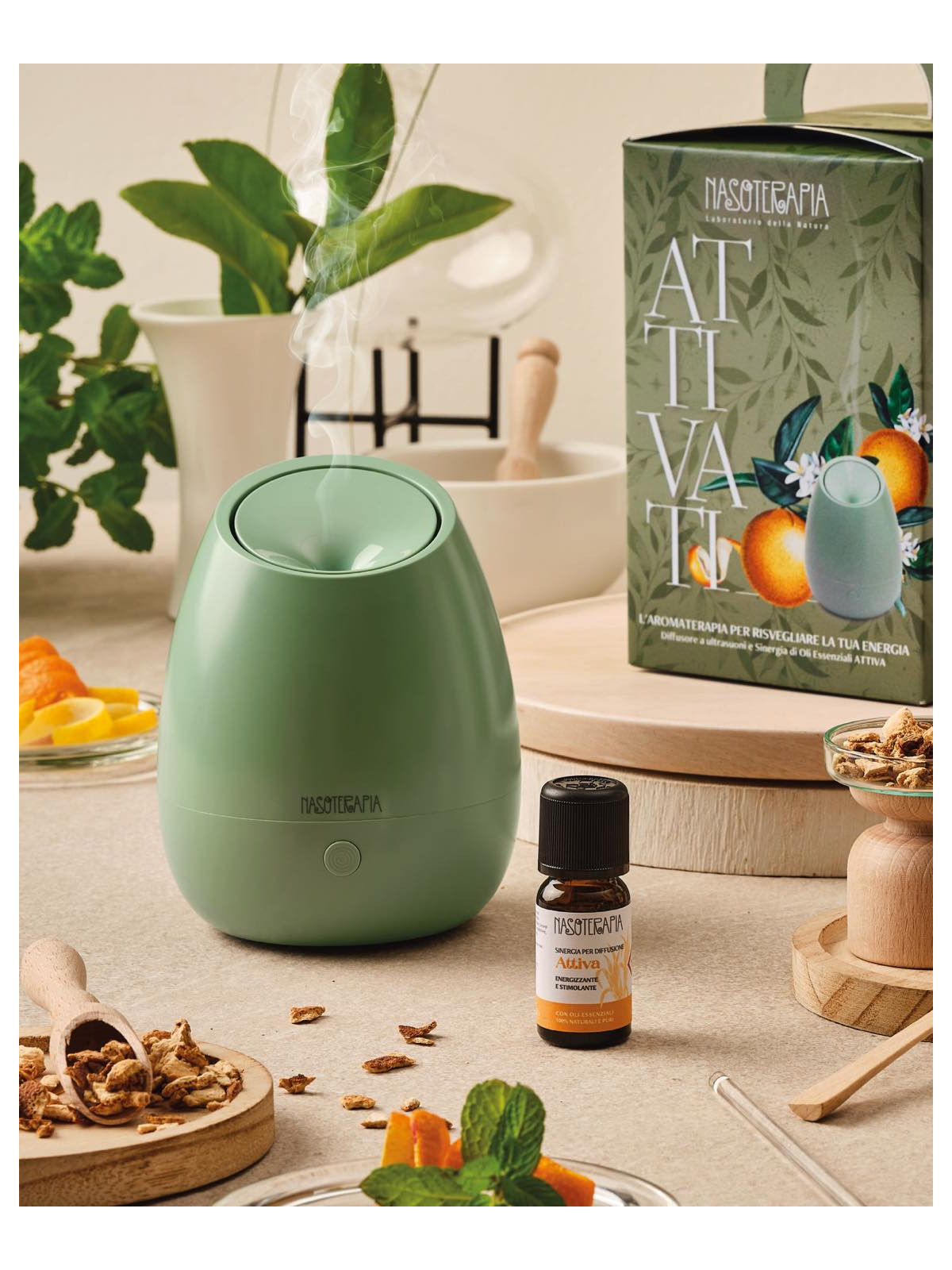 Kit diffusore ad ultrasuoni + sinergia di oli essenziali "Attiva"