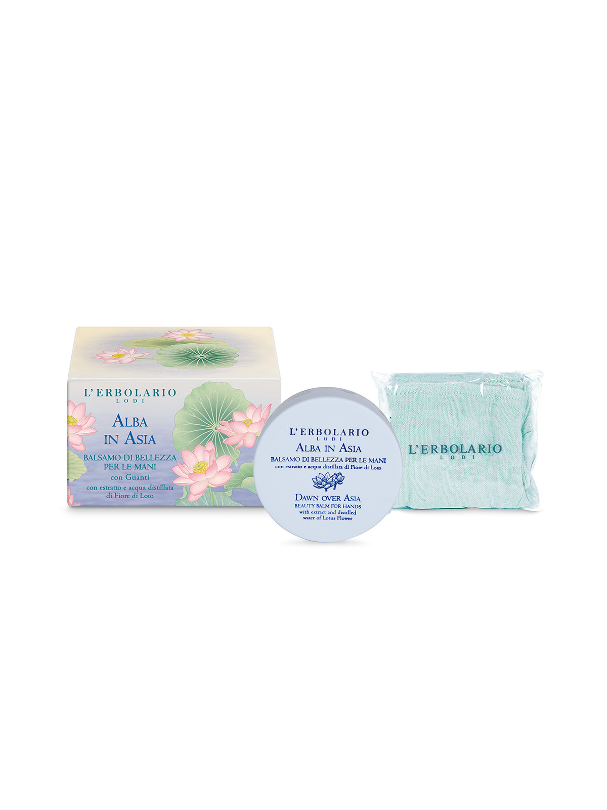 Estratto e acqua distillata di Fiore di Loto, estratto oleoso di Fiore di Loto, Aminoacidi del Riso, olio di Germe di Riso, burro di Riso, Vitamina E dai semi della Soja, cera di Crusca di Riso, burri di Cacao e Cocco biologici, frazione insaponificabile dell’olio di Oliva, burro di Karité.