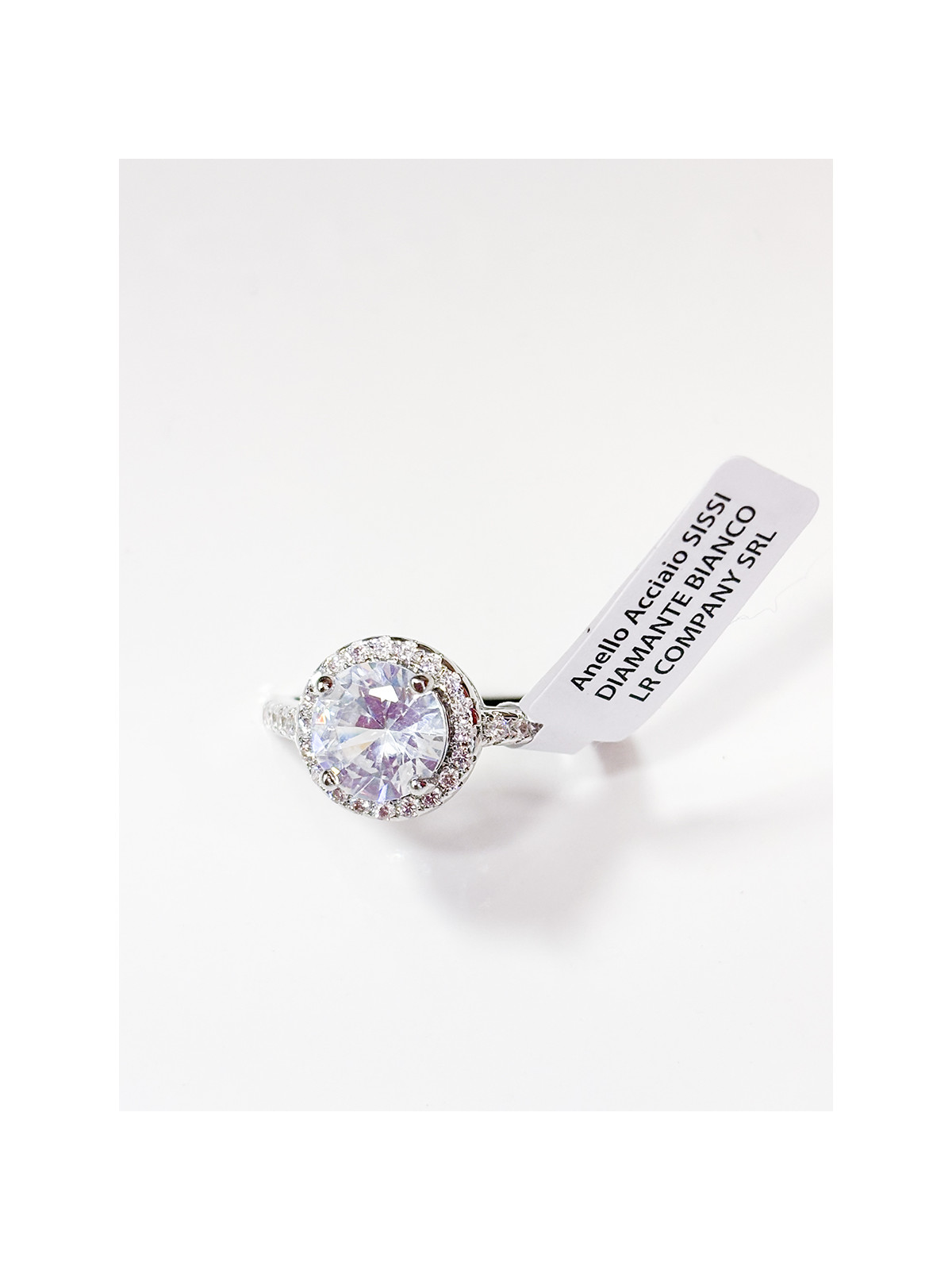 Anello in acciaio e cristallo color diamante bianco, taglia regolabile