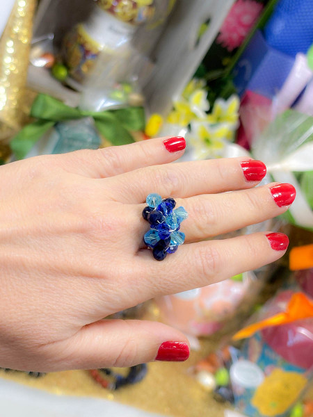 Anello regolabile con cristalli blu azzurro e celeste...