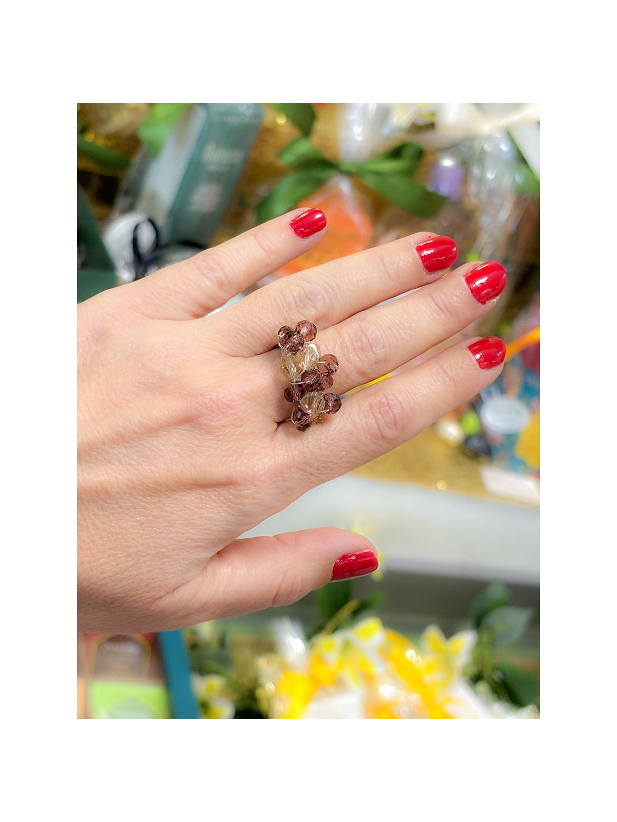 Anello regolabile con cristalli blu azzurro e celeste Nichel-free.