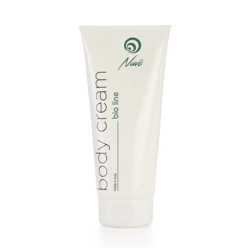 Dermo tested su pelle sensibile Biologica certiciata 12 Principi Attivi Crema corpo biologica certificata. Contiene: Bava di lumaca, Aloe, estratto di calendula, estratto di achillea, acido ialuronico, vitamina E, Olio di Jojoba, Olio di rosa Mosqueta, Olio di Argan, Olio di Mandorle, Burro di Karité, Amido di riso. La sua texture leggera penetra rapidamente lasciando la pelle piacevolmente morbida, setosa, uniforme compatta e protetta. Ideale anche per pelle con smagliature 100% made in Italy.