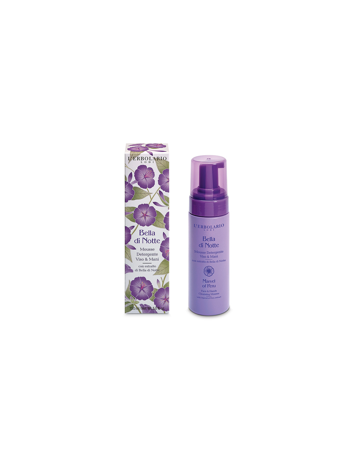 Una morbida Mousse detergente per il viso e per le mani, che abbina la delicata azione lavante ad una profumazione fiorita ma nel contempo leggera e soave. Contiene estratto di Bella di Notte e Acido Ialuronico ad alto peso molecolare, per contrastare la perdita di idratazione e lasciare la pelle morbida e fresca.