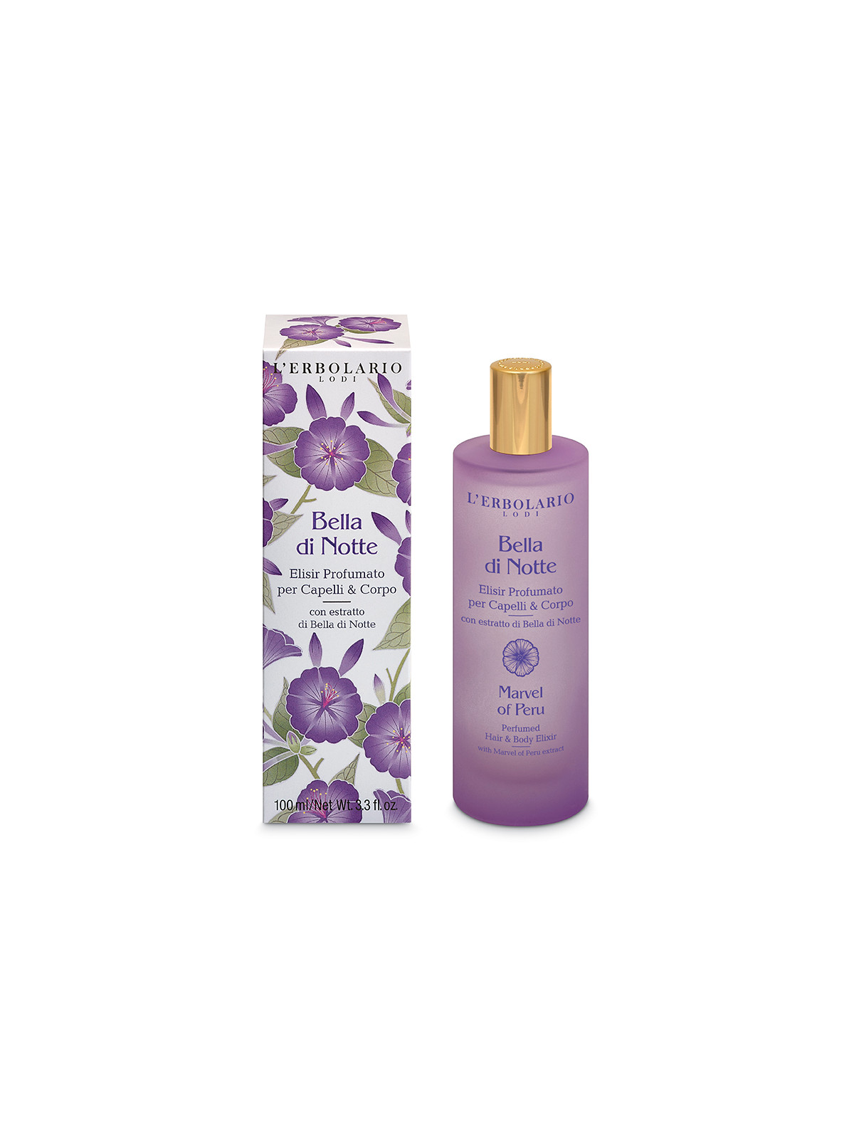 Leggero e impalpabile, questo spray profumato può essere vaporizzato sia sulla pelle del corpo che sulle lunghezze dei capelli per avvolgerli in una fragrante scia dalle note fiorite e vanigliate. Contiene estratto di Bella di Notte, dalle proprietà antidisidratanti e addolcenti sulla pelle, e Pantenolo quaternizzato, che svolge un’azione districante e volumizzante sui capelli.