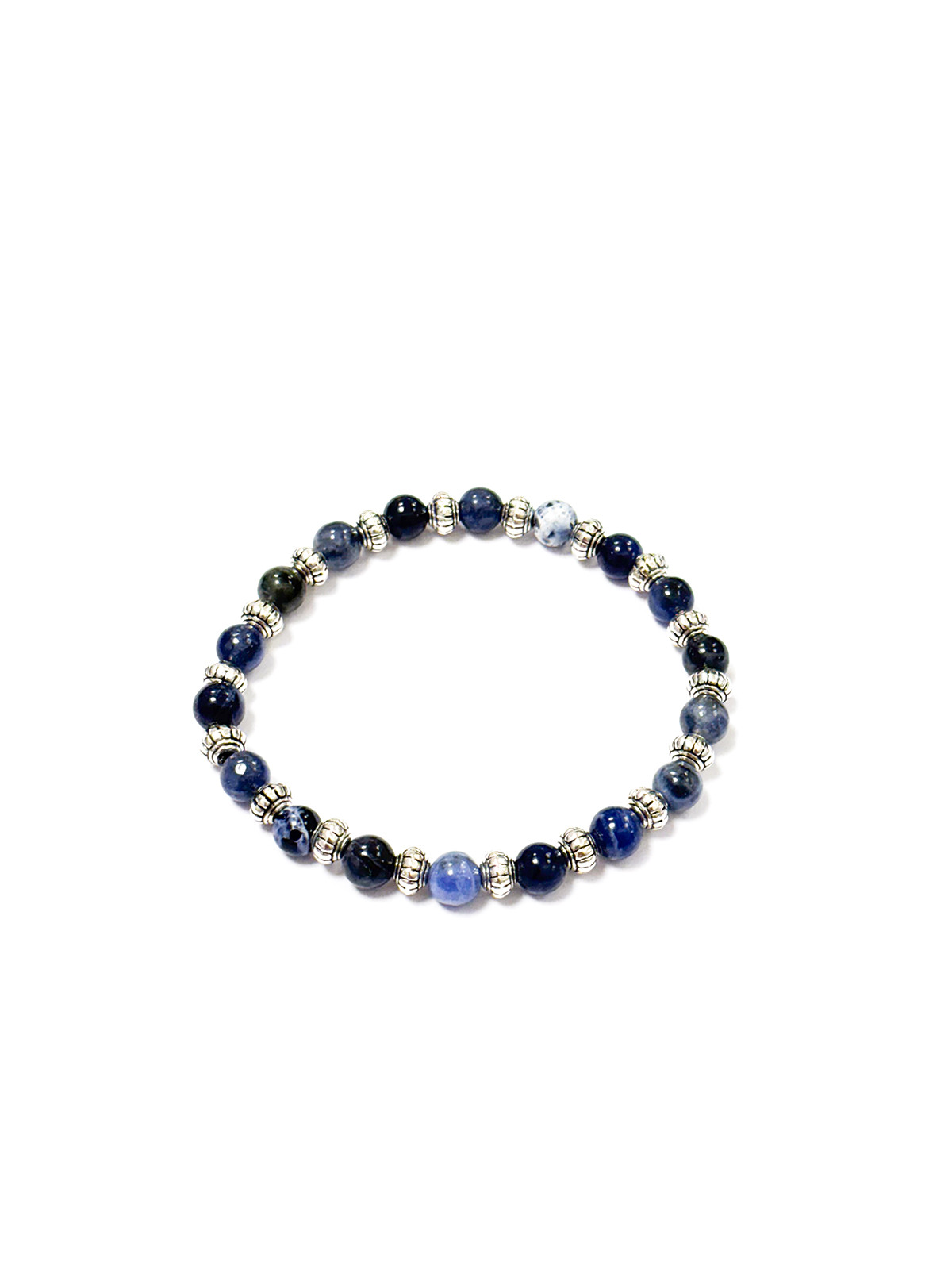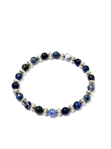 Bracciale elastico in pietre di Sodalite di grado A, diametro grani circa 6 mm. Inserti in metallo nichel-free.