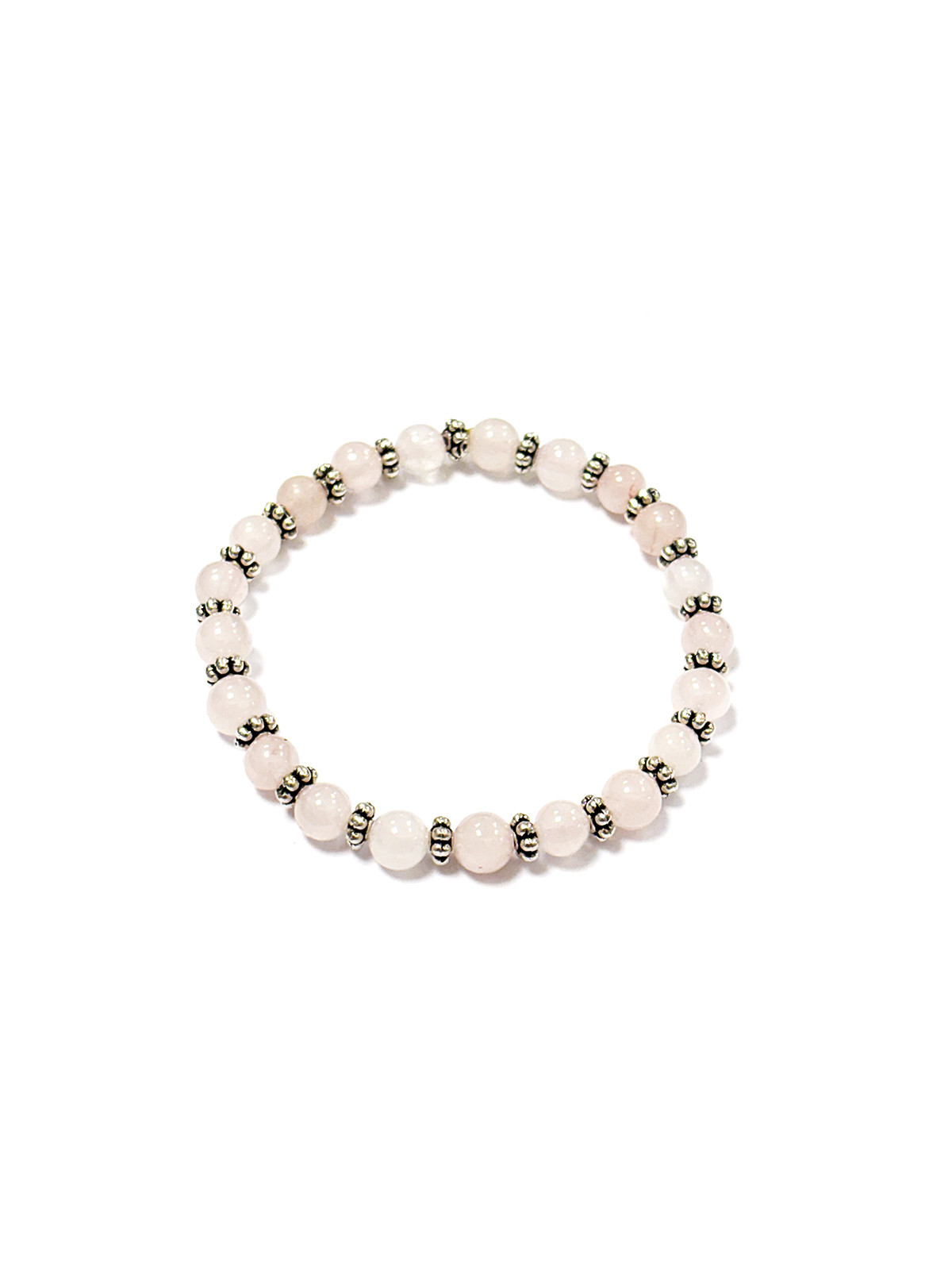 Bracciale elastico in pietre di Quarzo Rosa di grado A, diametro grani circa 6 mm. Inserti in metallo nichel-free.