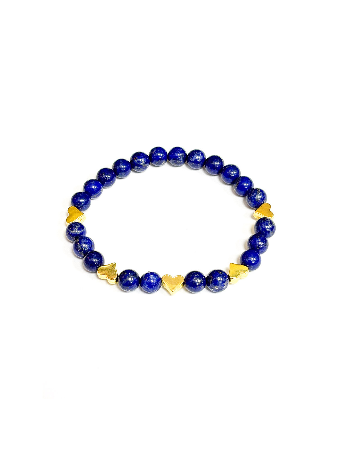 Bracciale elastico in pietre di Lapislazzuli grado AA, diametro grani circa 6 mm. Inserti in metallo nichel-free.