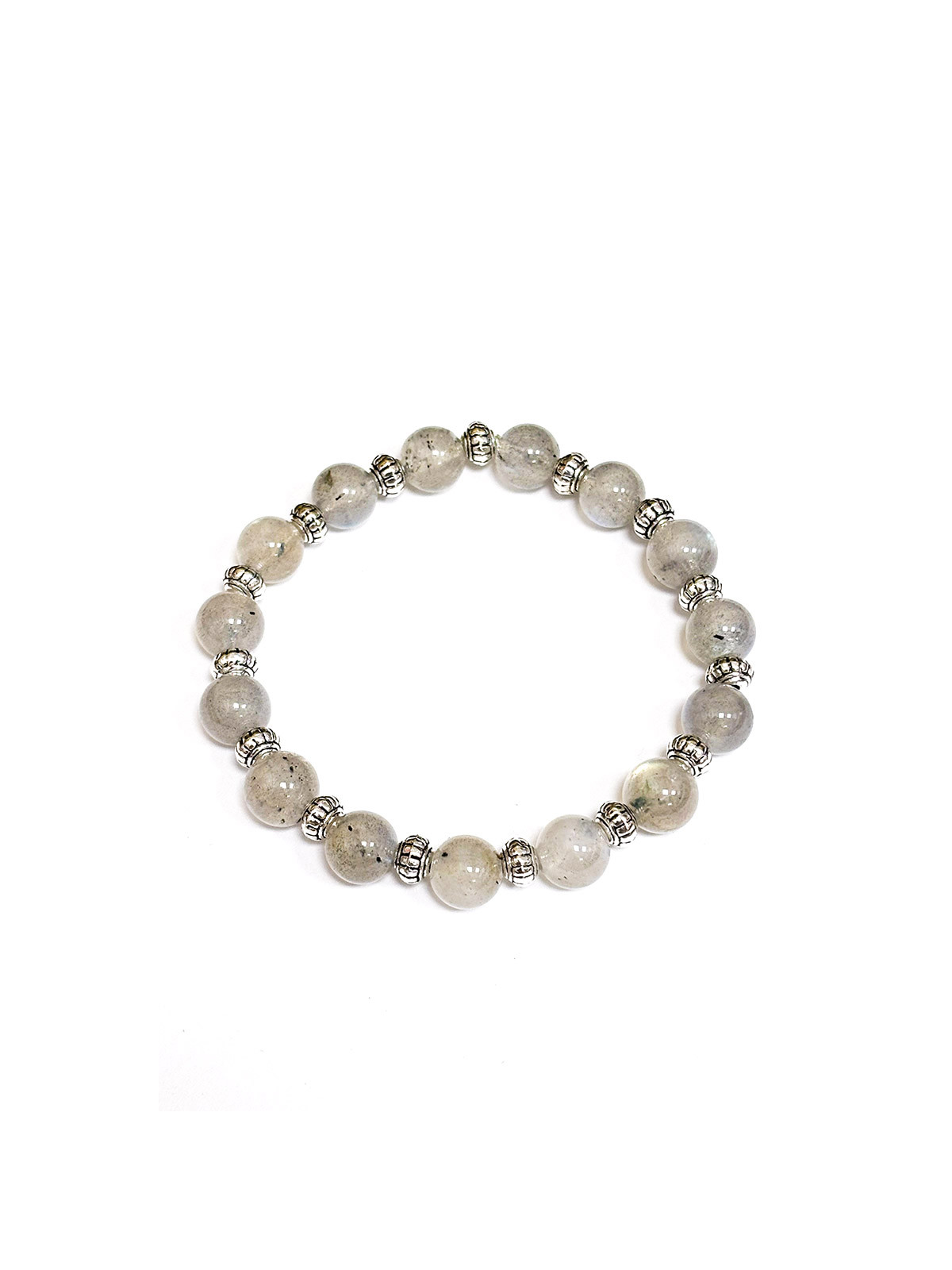 Bracciale elastico in pietre di Labradorite di grado AA, diametro grani circa 8 mm. Inserti in metallo nichel-free.
