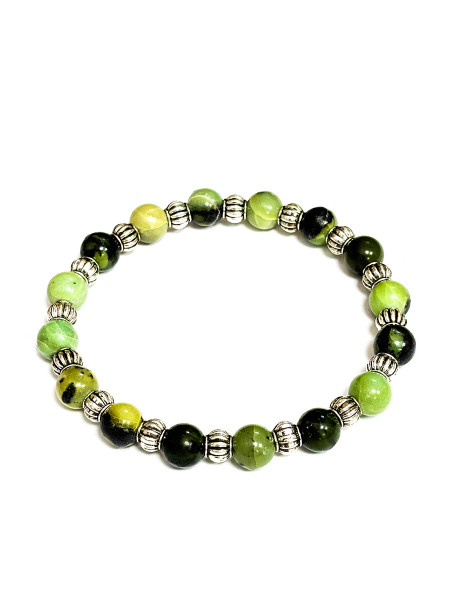 Bracciale elastico con pietre di Crisoprasio (6 mm). Inserti...
