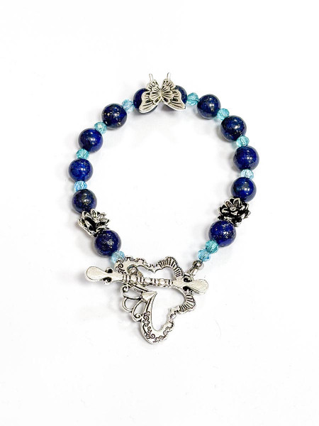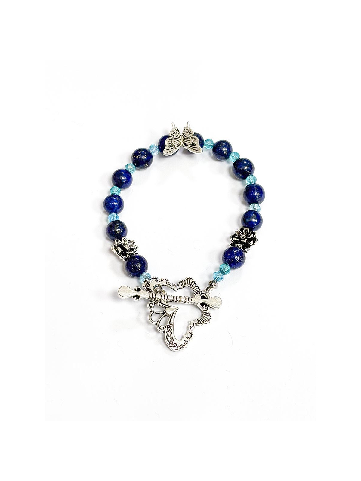 Bracciale in pietre di Lapislazzuli, diametro grani circa 8 mm e cristalli. Inserti in metallo nichel-free.