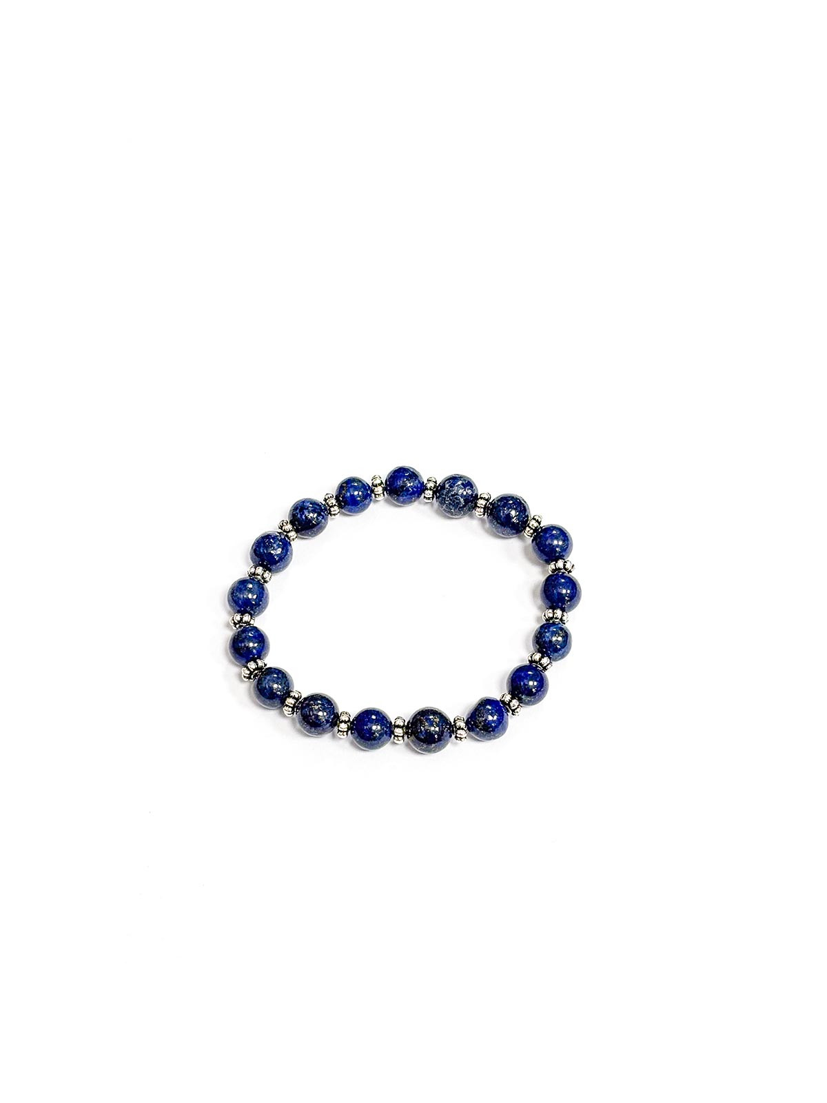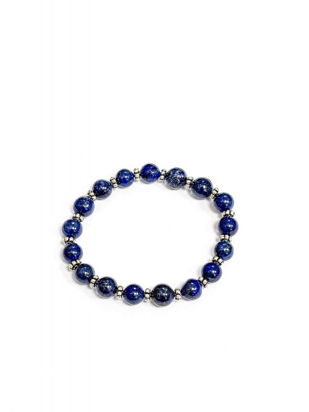 Bracciale elastico in pietre di Lapislazzuli grado AA, diametro grani circa 8 mm. Inserti in metallo nichel-free.