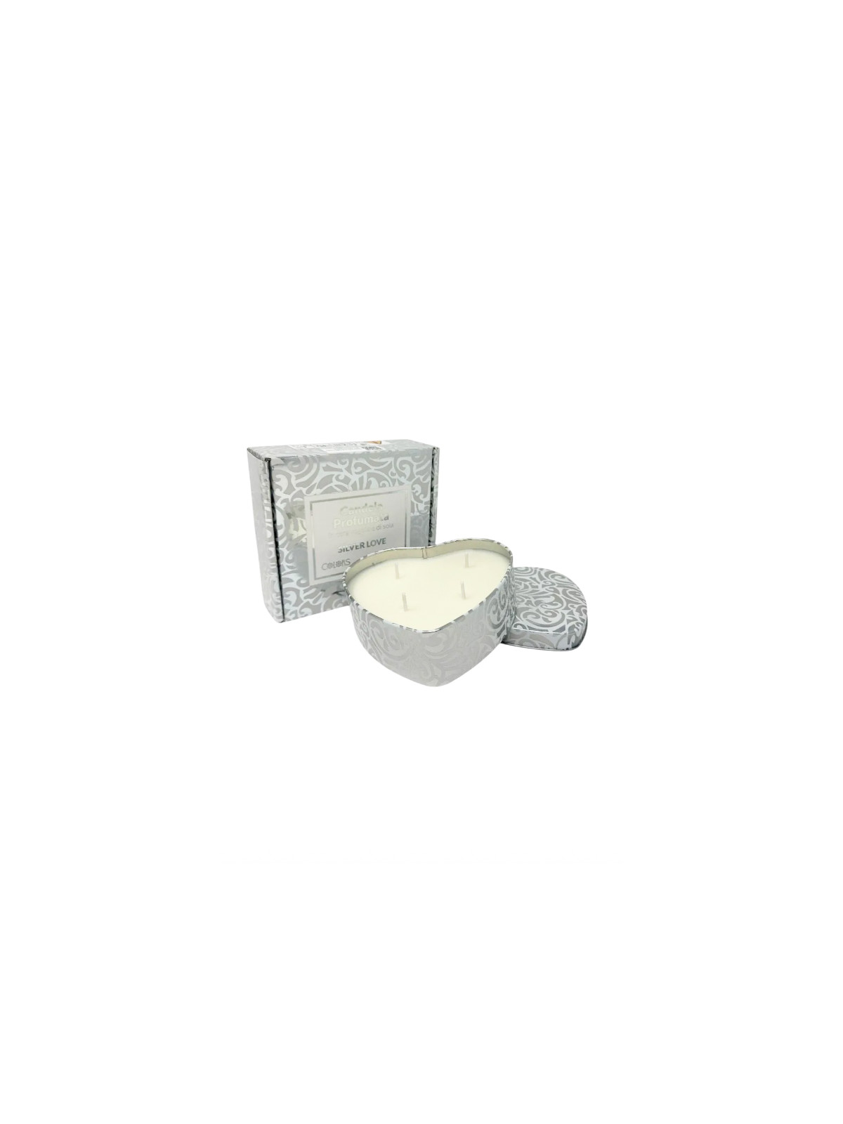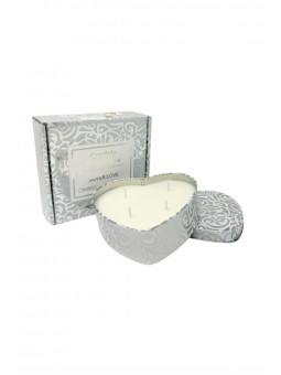 Candela profumata a forma di cuore realizzata in cera vegetale di soia con profumazione naturale.