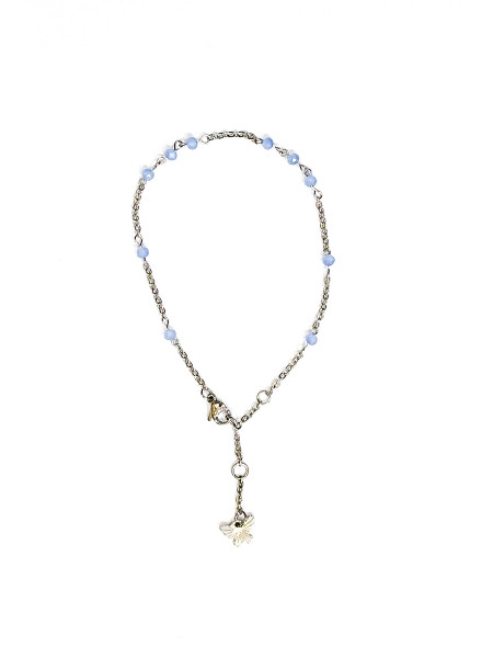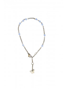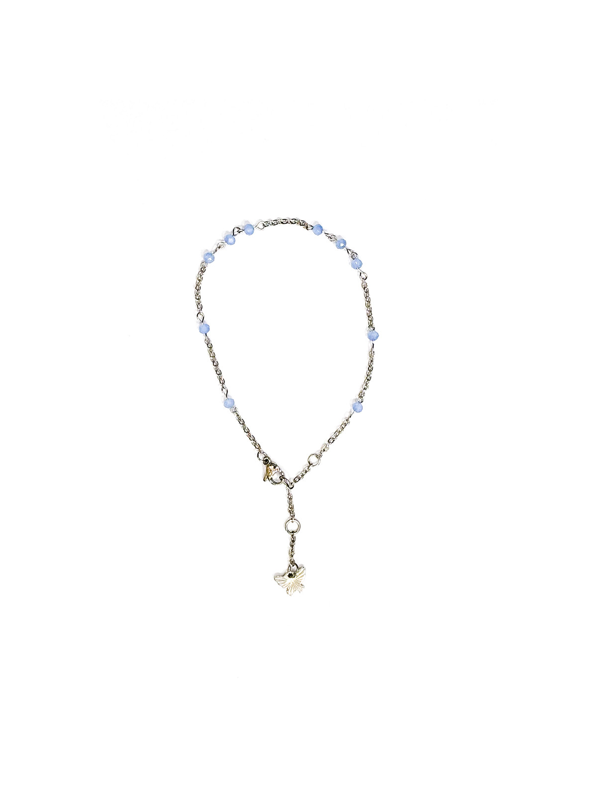 Cavigliera in acciaio. Chiusura regolabile. Filo singolo, pendente butterfly. Pietre celesti