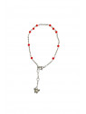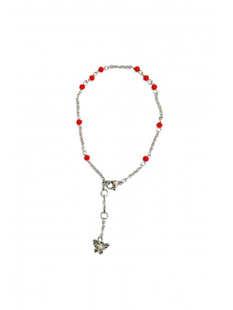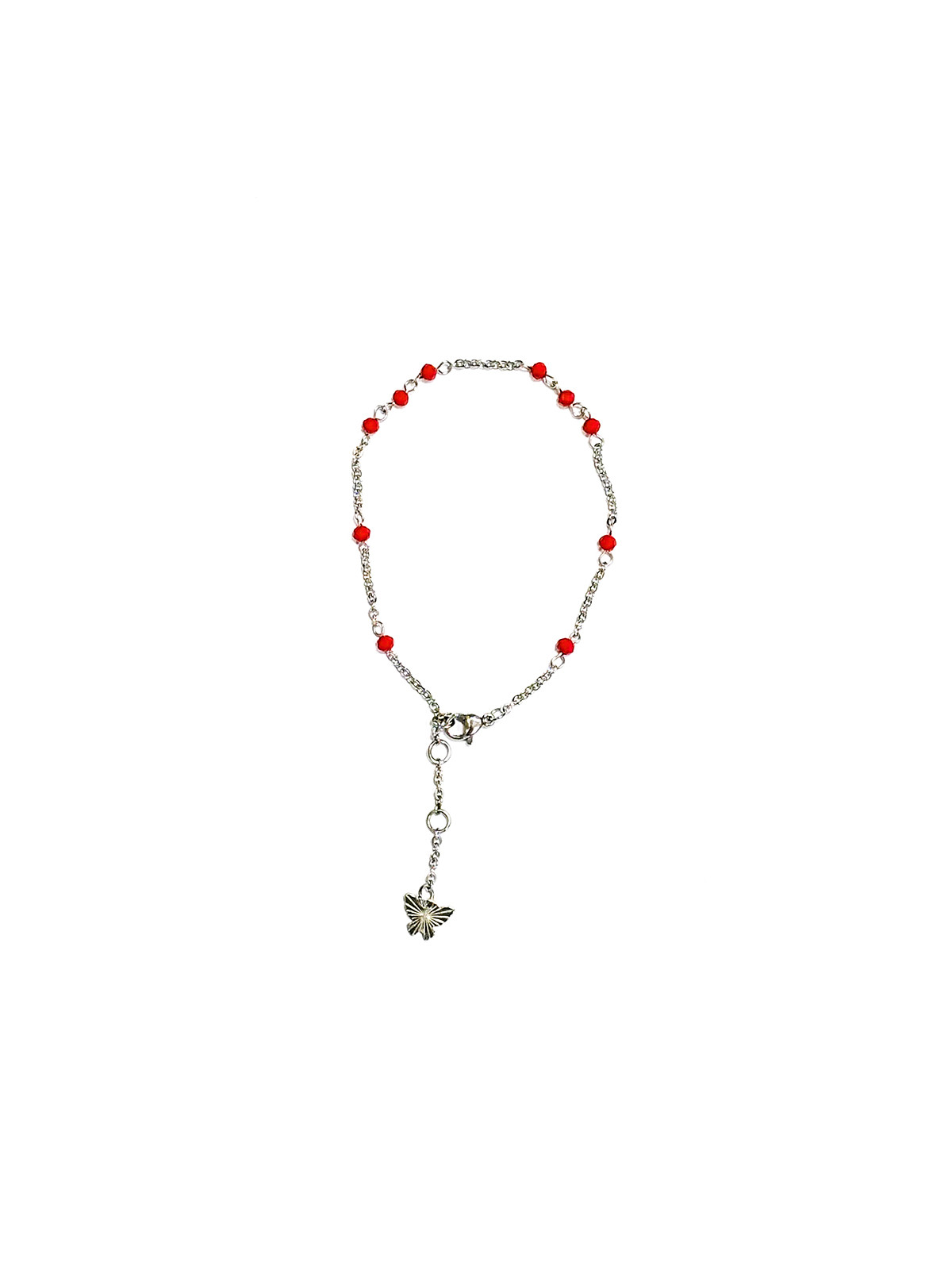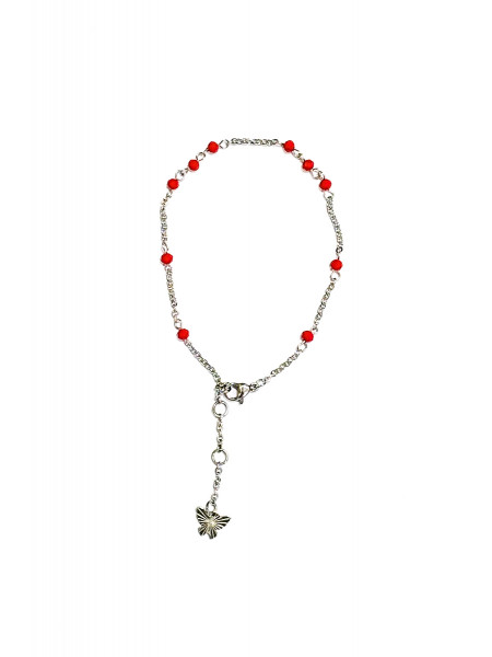 Cavigliera in acciaio. Chiusura regolabile. Filo singolo, pendente butterfly. Pietre rosse