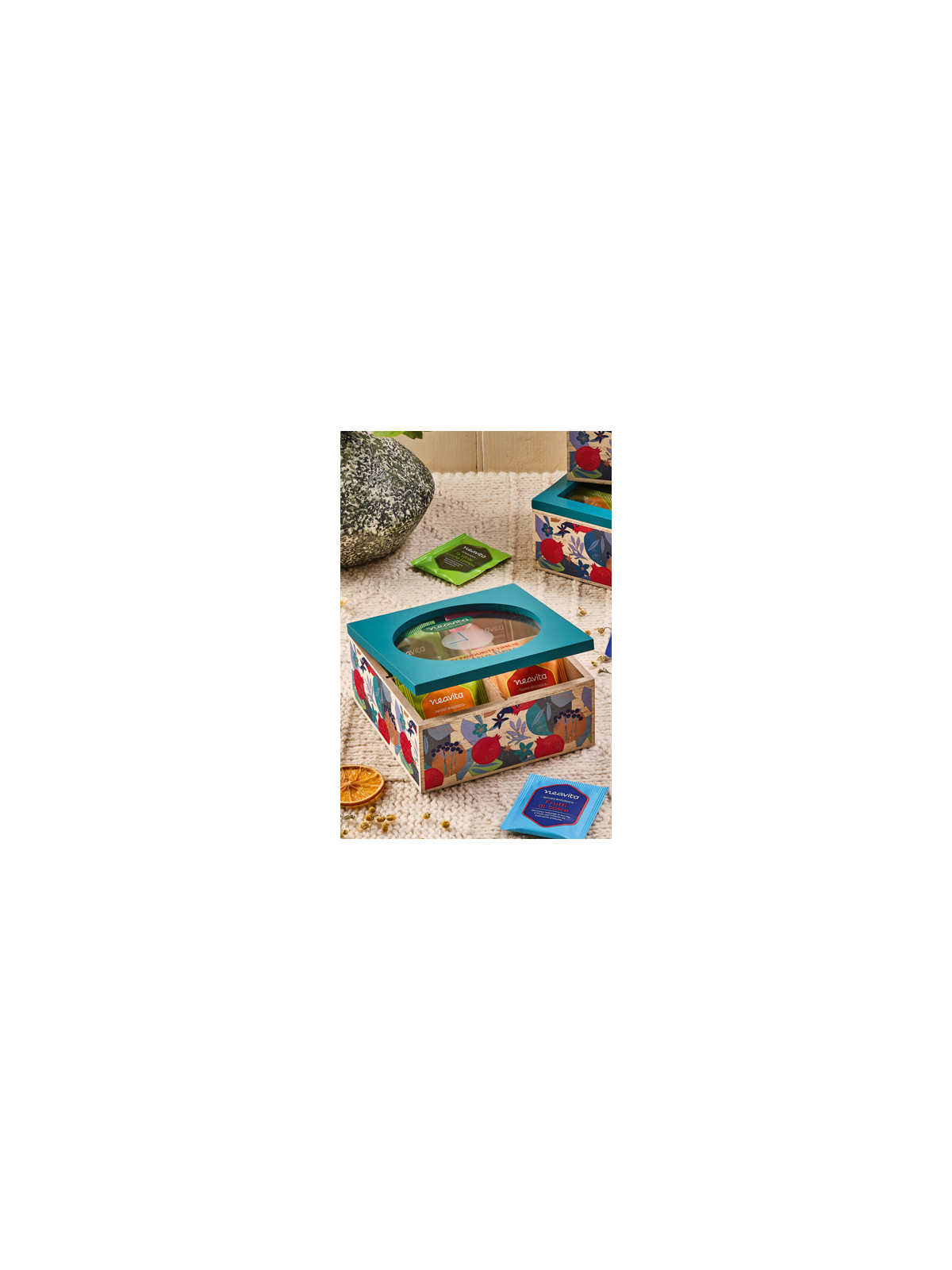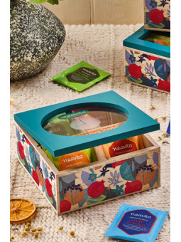 5 bustine per ogni tipo di infuso: TE' verde Matcha Lemon, Rooibos arancia e cannella, Fragole e Ibisco, Mandarino e Zenzero.