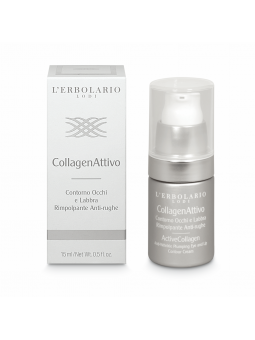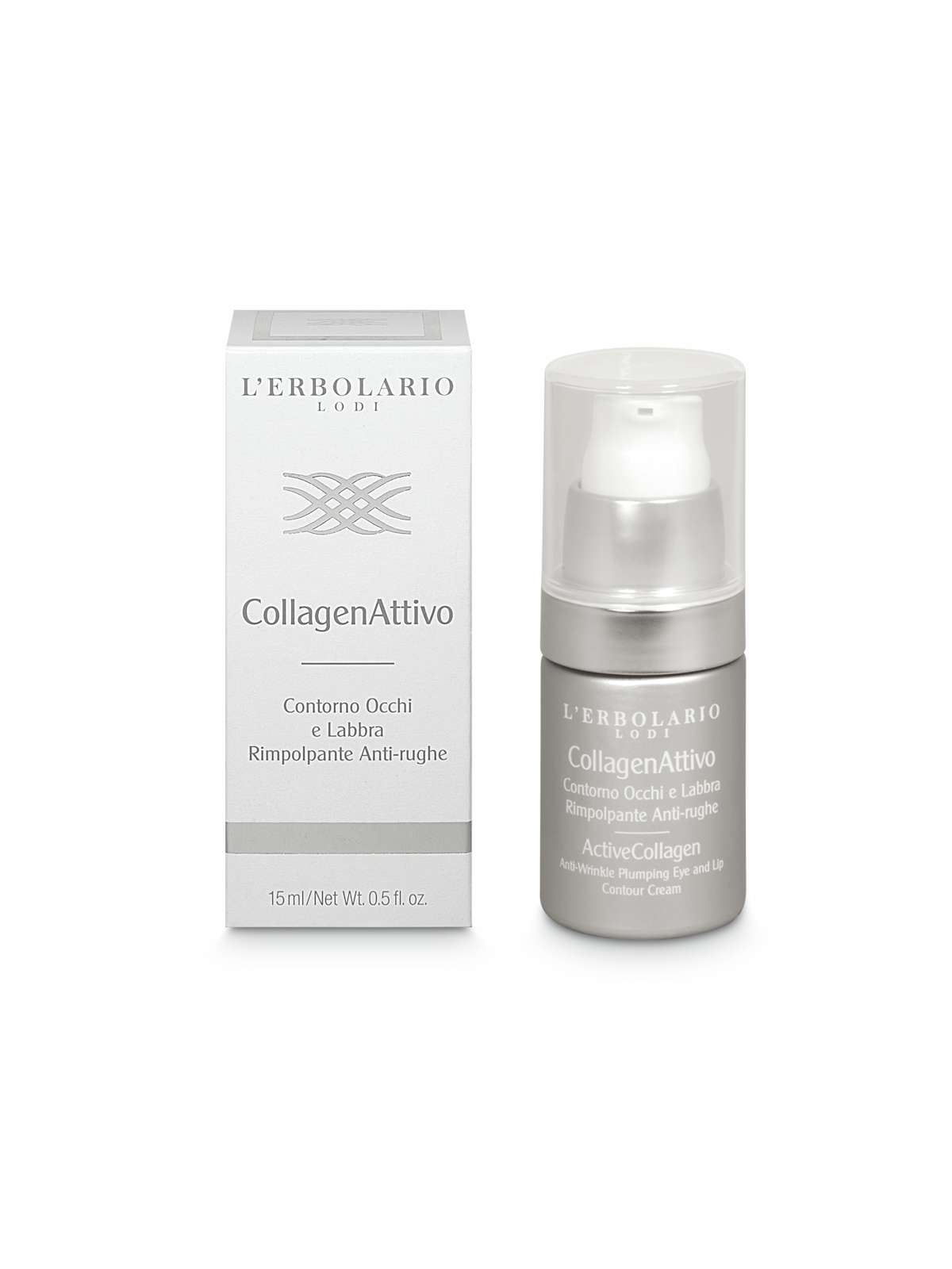 Crema per contorno occhi e contorno labbra rimpolpante e antirughe con collagene. Utilizzata ogni giorno, interviene efficacemente sui segni di stanchezza e d’espressione di contorno occhi e labbra: attenua visibilmente le rughe, regala un effetto lifting e rimpolpa per offrire un aspetto più fresco, levigato e tonico. Contiene il Collagene biomimetico derivato da fermentazione di substrati vegetali, ad azione rimpolpante e anti-rughe, Acido Ialuronico compattante, Vitamina C antiossidante ed estratto di Cotone e Melograno, levigante e in grado di prevenire il foto-invecchiamento. Oftalmologicamente testato. Senza siliconi, parabeni e petrolati 98% ingredienti di origine naturale La restante percentuale di ingredienti garantisce stabilità e gradevolezza del prodotto. Senza profumo