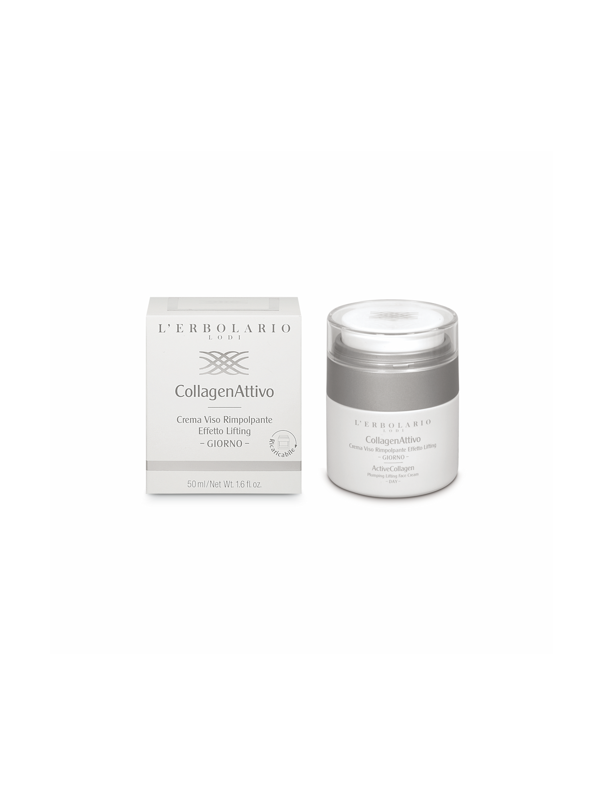 Crema giorno con collagene per il viso ad azione rimpolpante, rassodante e ad effetto lifting, specifica per pelli non più giovanissime o mature. Questo sublime anti age globale è formulato per correggere i principali segni del tempo, come rilassamenti e rughe di viso e collo. Il Collagene biomimetico selezionato da L’Erbolario è derivato dalla fermentazione di substrati vegetali, e ha proprietà rimpolpante e liftante. La formula contiene anche Acido Ialuronico idratante e anti rughe, Vitamina C antiossidante ed estratto di Acmella oleracea, levigante e ad effetto lifting. Giorno dopo giorno, il risultato è una vera sorpresa: un viso più rimpolpato, tonico e disteso, come liftato.
