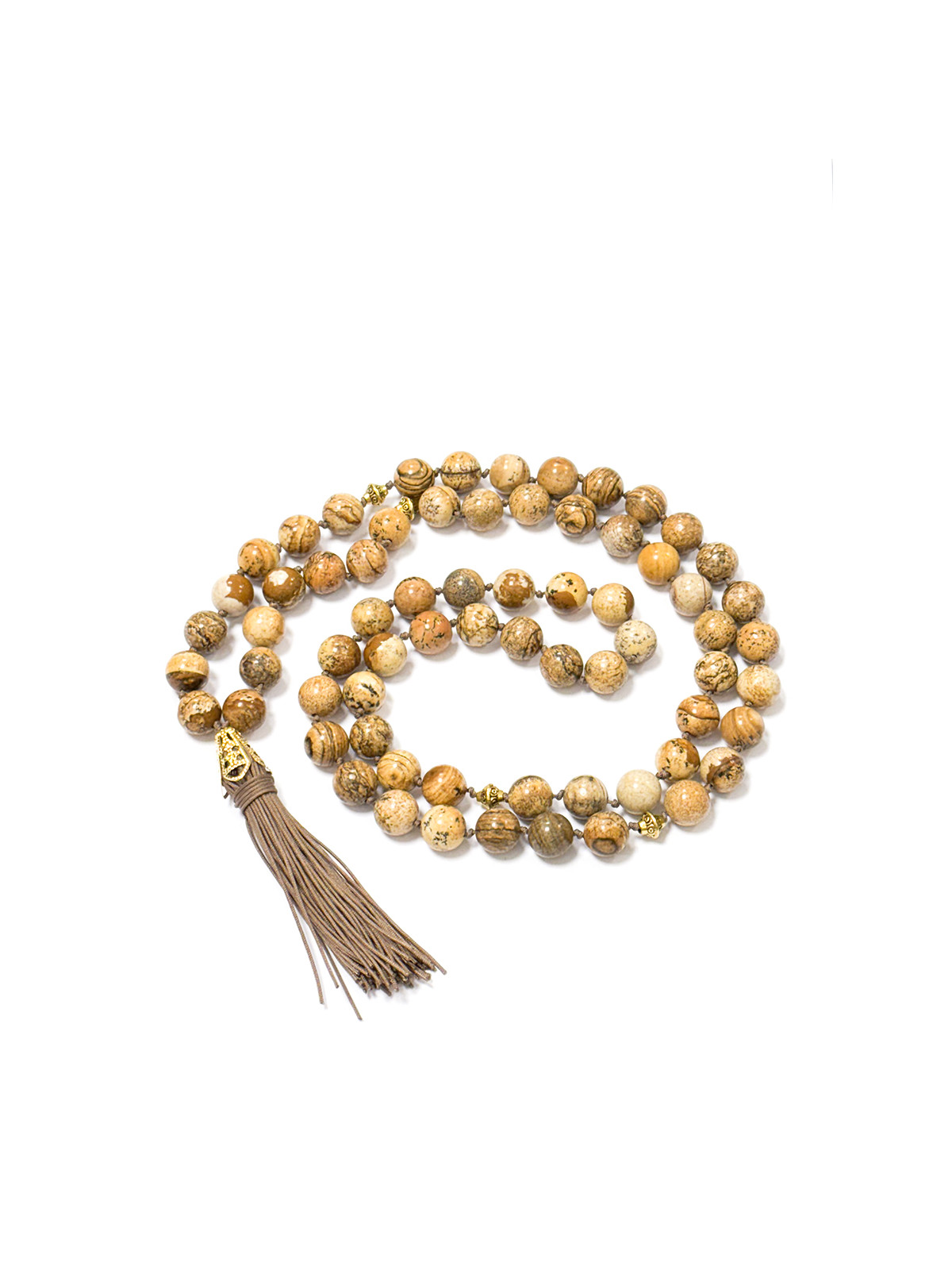 Collana fatta a mano con pietre di Diaspro Paesaggio di grado A. Dimensione grani circa 10 mm.