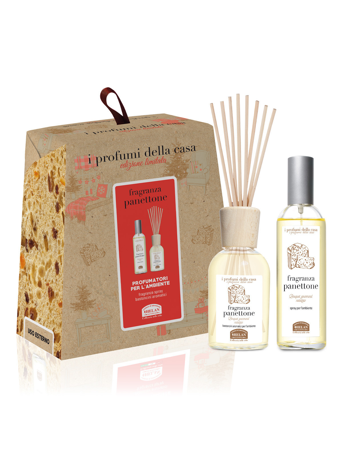 Caratteristiche: La confezione contiene i seguenti prodotti della Fragranza Panettone: -Fragranza per l'Ambiente Spray 100mL -Bastoncini Aromatici 100mL Le note zuccherine del Cedro Candito si fondono a quelle più alcoliche del Rum... un cuore voluttuoso di Crema Pasticcera e Cannella inonda il fondo di Vaniglia Nera e Zucchero integrale. Irresistibilmente avvolgente con golose nuances gourmand. Spruzziamo nell'aria e negli angoli delle stanze questa piacevole fragranza per donare pienezza alle ore trascorse fra le pareti domestiche e infondere nella casa le note profumate del particolare bouquet che aiuterà a rasserenare la mente con impronte olfattive evocative di periodi gioiosi.