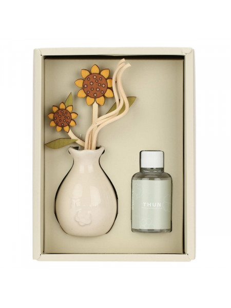 Il nuovo set con diffusore in porcellana smaltata THUN ed i bastoncini in rattan, decorati con un bellissimo girasole è perfetta per decorare la tua casa e come idea regalo per tutte le occasione. Scopri tutta la collezione e le sue varianti.