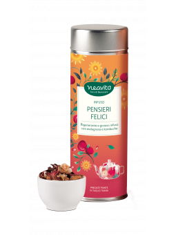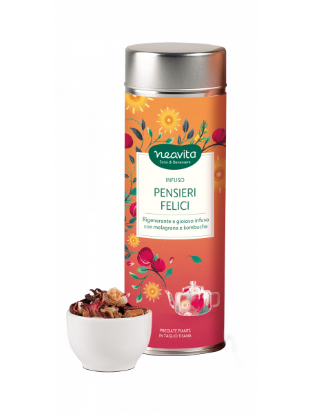 La felicità si svela nei frutti rossi di melagrana e nelle proprietà rigeneranti dell’estratto di kombucha, il tè fermentato conosciuto in oriente come “elisir di lunga vita”. Questo infuso sprigiona una sensazione di serenità e si fa riconoscere per un gusto intenso e deciso. Una tazza che genera pensieri felici.