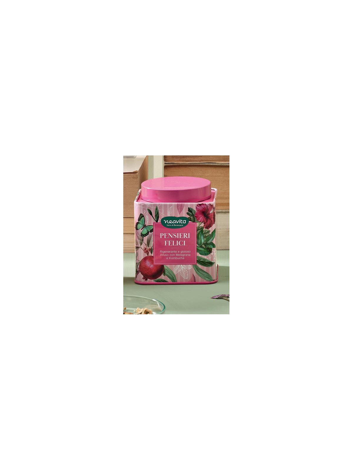 La felicità si svela nei frutti rossi di melagrana e nelle proprietà rigeneranti dell’estratto di kombucha, il tè fermentato conosciuto in oriente come “elisir di lunga vita”. Questo infuso sprigiona una sensazione di serenità e si fa riconoscere per un gusto intenso e deciso. Una tazza che genera pensieri felici.