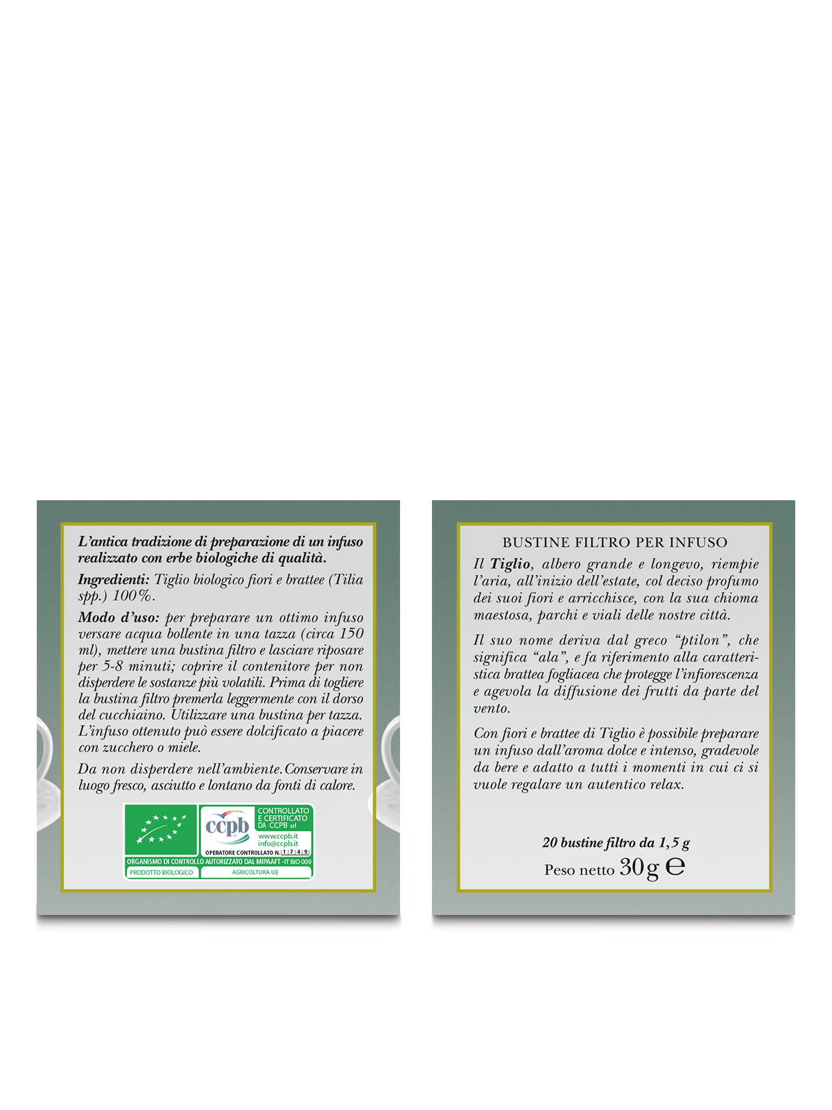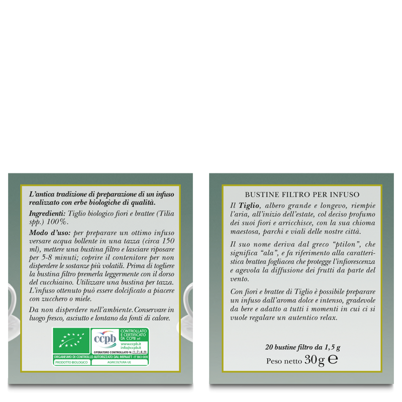 20 bustine filtro monodose Tiglio biologico fiori e brattee 100%