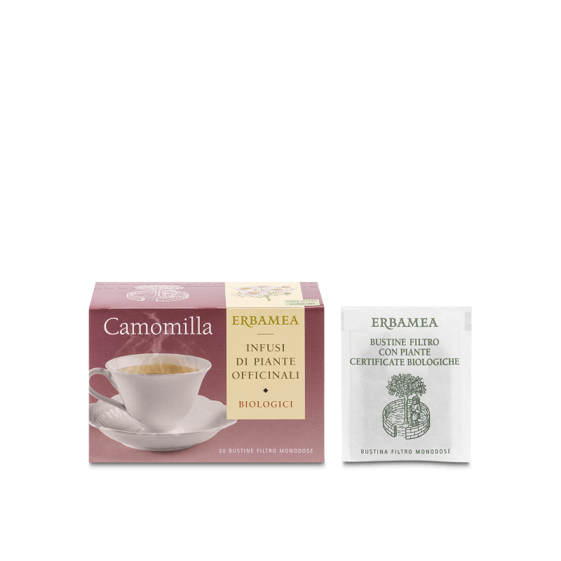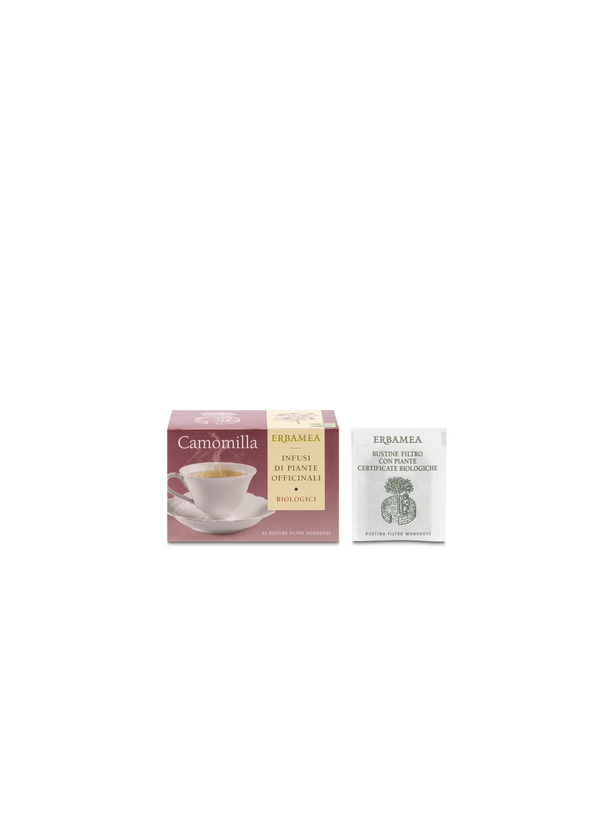 Ecco delle comode bustine filtro con fiori setacciati di Camomilla biologica, sigillate una ad una, per conservare inalterato tutto l'aroma dei fiori e le loro proprietà naturali. Con esse è possibile preparare tante tazze di infuso profumato, da bere durante la giornata o anche la sera prima di andare a dormire.