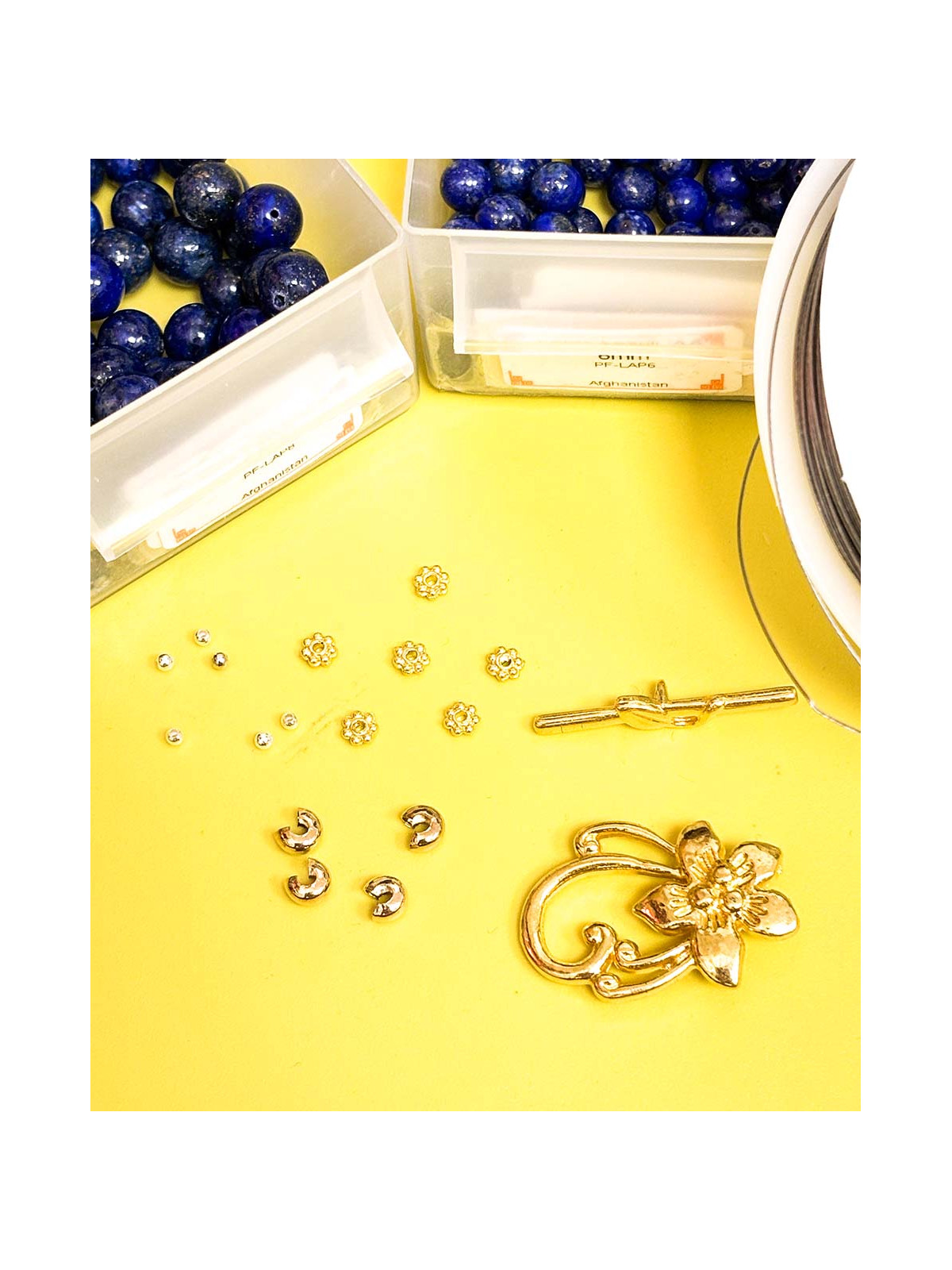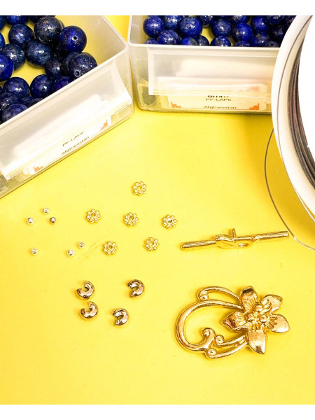 Kit per la realizzazione di 1 Bracciale Lapislazzuli con chiusura a fiore