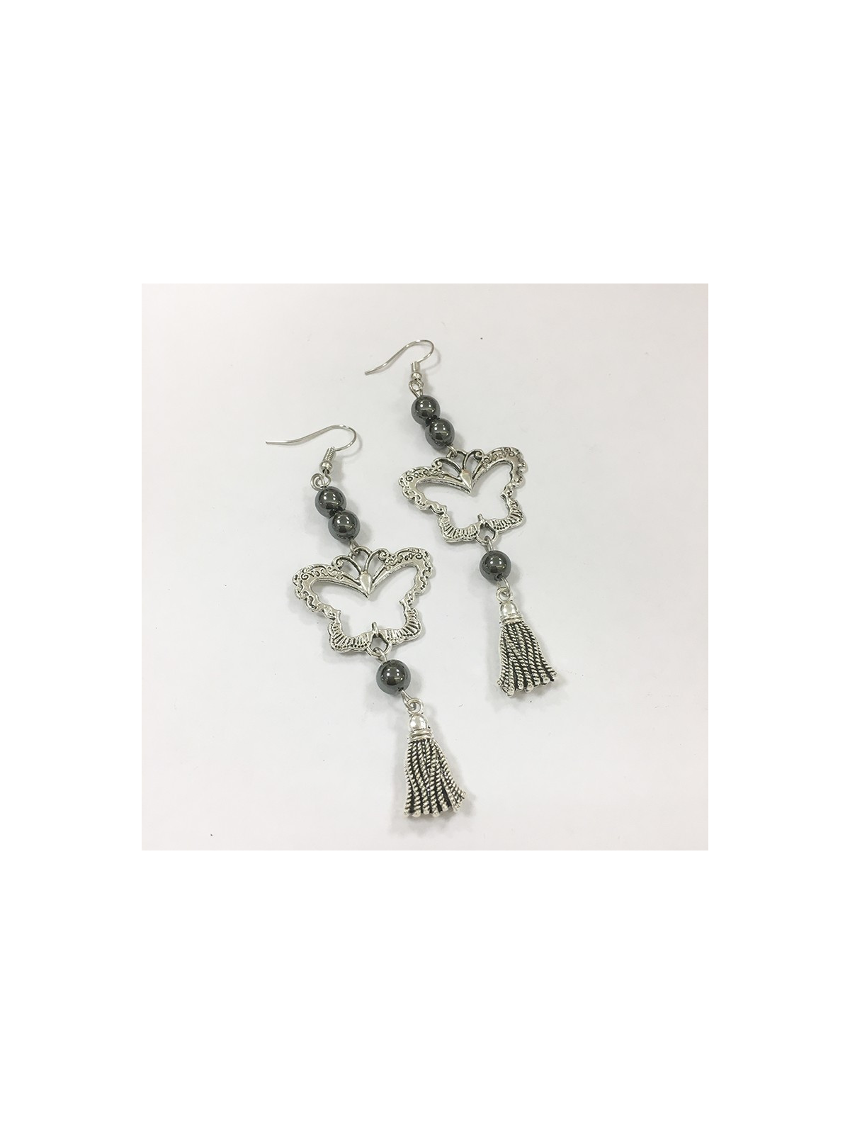Orecchini farfalla con pietra ematite grani 6mm.