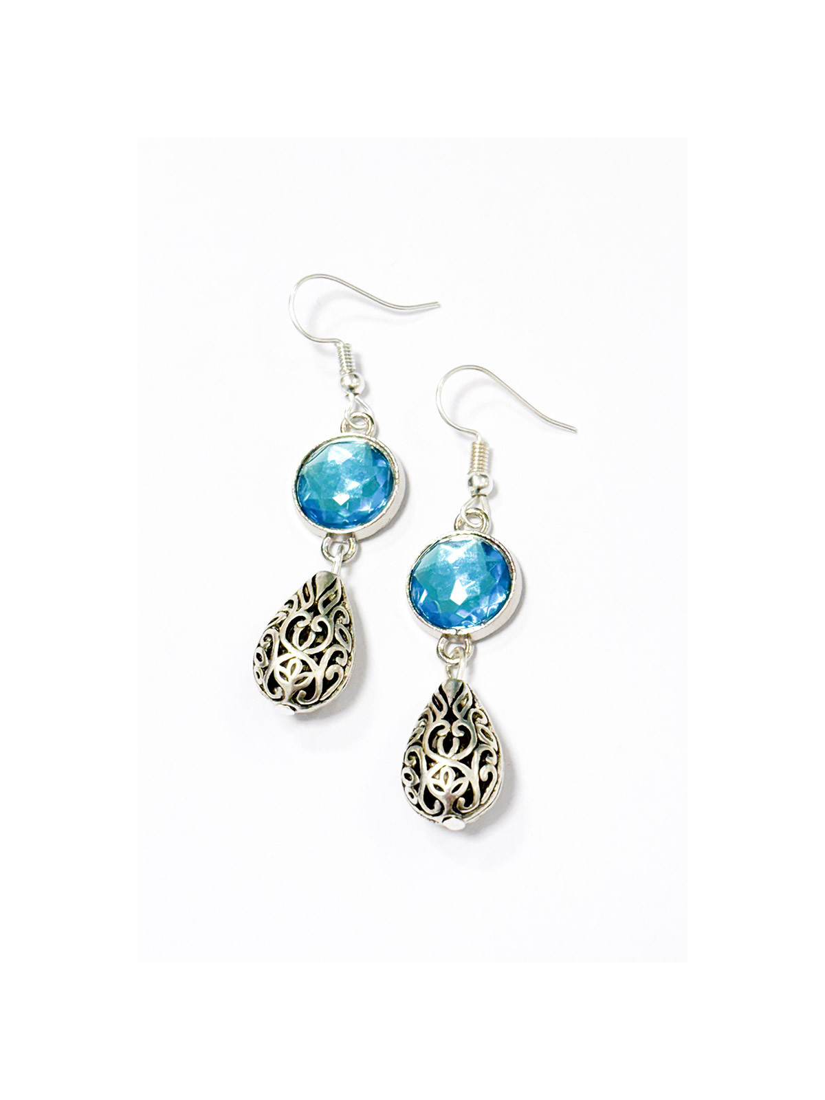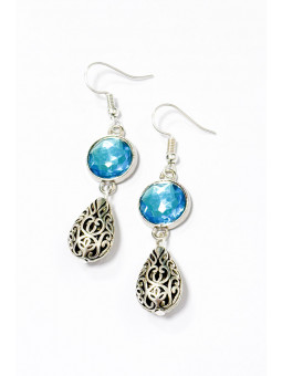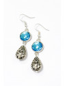 Orecchini fatti a mano con inserto di vetro azzurro. Nichel-free.