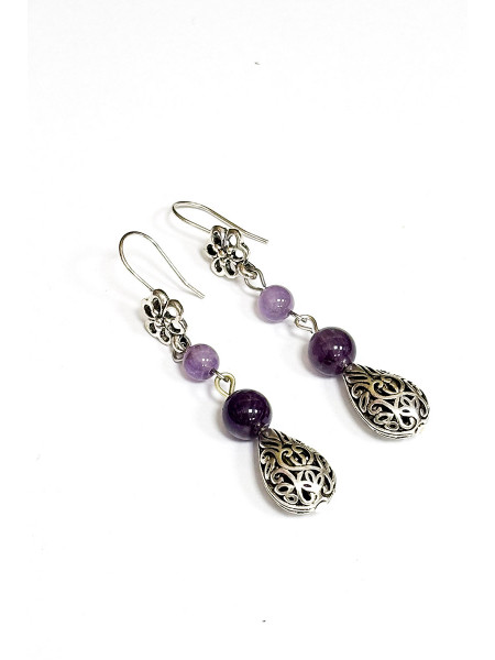 Orecchini con pietre di Ametista Scura 8 mm e ametista chiara 6 mm e inserti in metallo nichel-free.
