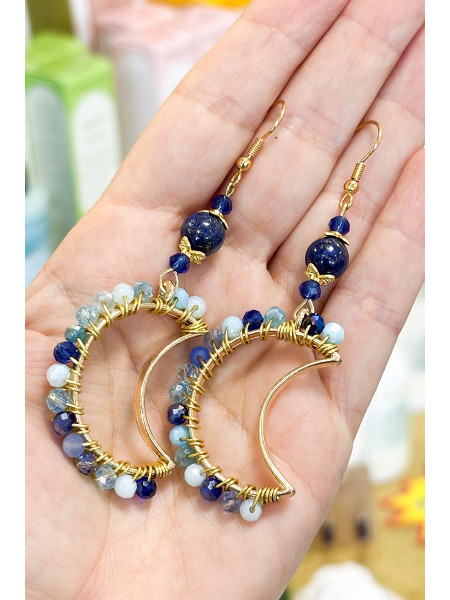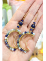 Orecchini con cristalli celeste/blu e pietre di lapislazzuli. Nichel-free.