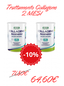 Il collagene è una proteina strutturale di fondamentale importanza per il corpo dal momento che concorre al benessere cellulare e alla formazione e alla riparazione dei tessuti. È’ il componente principale dei capelli, delle unghie, della pelle, così come dei legamenti, delle ossa e dei tessuti connettivi. Costituisce il 30% delle proteine corporee totali. Sfortunatamente la sua produzione diminuisce con l’avanzare dell’età, ed in particolar modo dopo i 25-30 anni. Collagene Rigenera™, a differenza dal collagene nativo è facilmente digeribile. E’ infatti ottenuto da collagene di tipo I e II attraverso un processo di idrolisi enzimatica che consente di ridurre la fibra di collagene in oligopeptidi di piccole dimensioni e quindi di basso peso molecolare. In virtù di questo, Collagene Rigenera™ è maggiormente biodisponibile e altamente assibilabile. Il prodotto contiene anche: vitamina C, magnesio e acido ialuronico. La vitamina C contribuisce alla normale formazione del collagene per la normale funzione delle ossa, delle cartilagini, dei denti e della pelle. Il magnesio contribuisce al mantenimento di ossa normali. Per godere dei benefici del Collagene Rigenera™ è fondamentale assumere 11 grammi di prodotto al giorno e seguire una dieta equilibrata. Collagene Rigenera™ è ottenuto da tessuto osseo e articolare di origine suina.