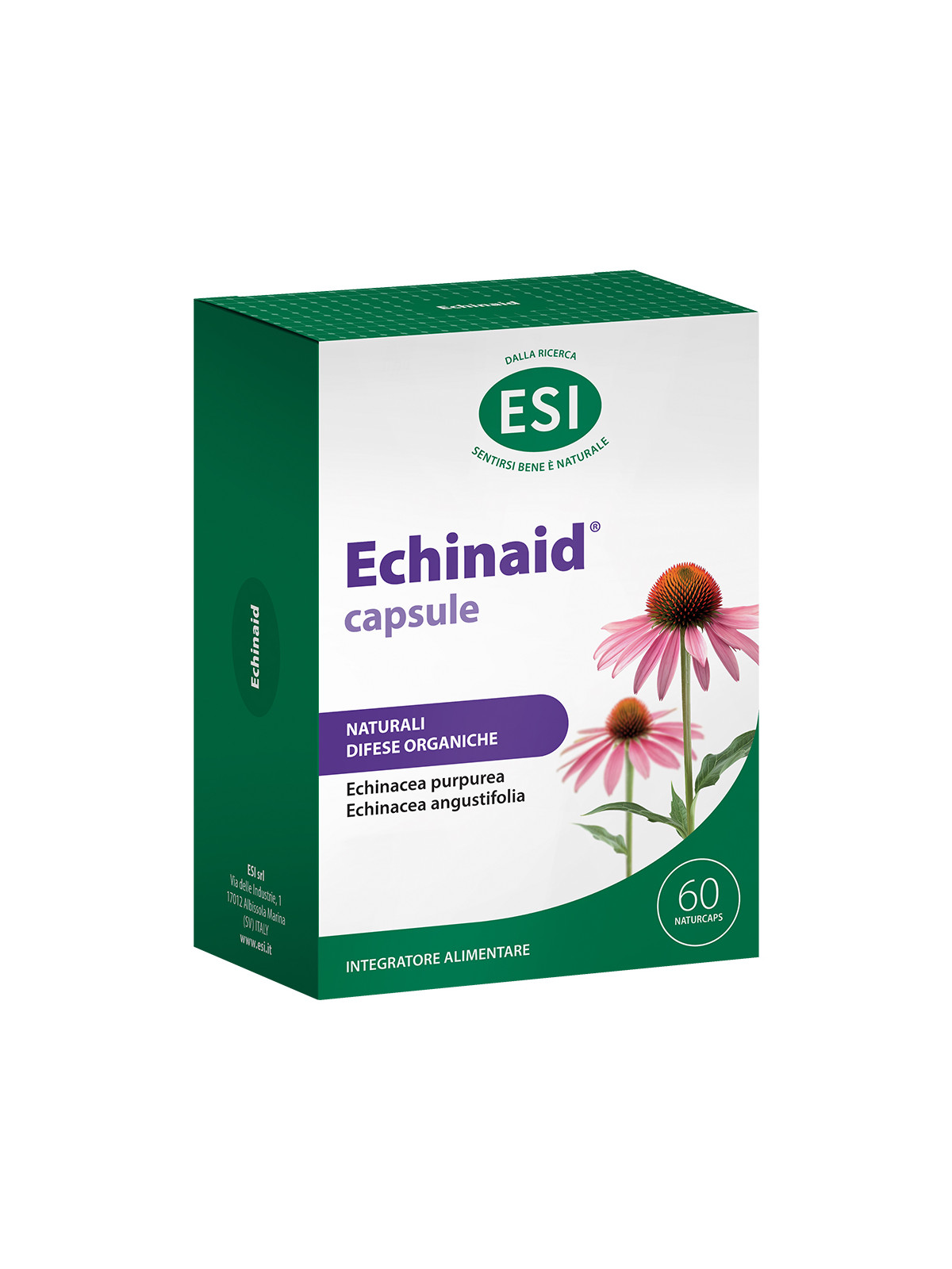 Ogni 10,00 € di spesa ricevi 1 punto / 1 punto = 0,75 € scontoEchinaid naturcaps è l’integratore alimentare a base di una combinazione di estratti standardizzati della pianta intera di Echinacea per proteggere l’organismo contro gli agenti patogeni responsabili di influenza e raffreddore. Una formulazione che concentra le proprietà benefiche dell’Echinacea, utile per favorire le naturali difese dell’organismo. Comode capsule vegetali per fortificare le difese immunitarie Le Naturcaps sono costituite da una fibra vegetale ottenuta dalla fermentazione della tapioca, quindi completamente naturale e priva di coloranti artificiali, facilmente digeribile, adatta a vegani e vegetariani.