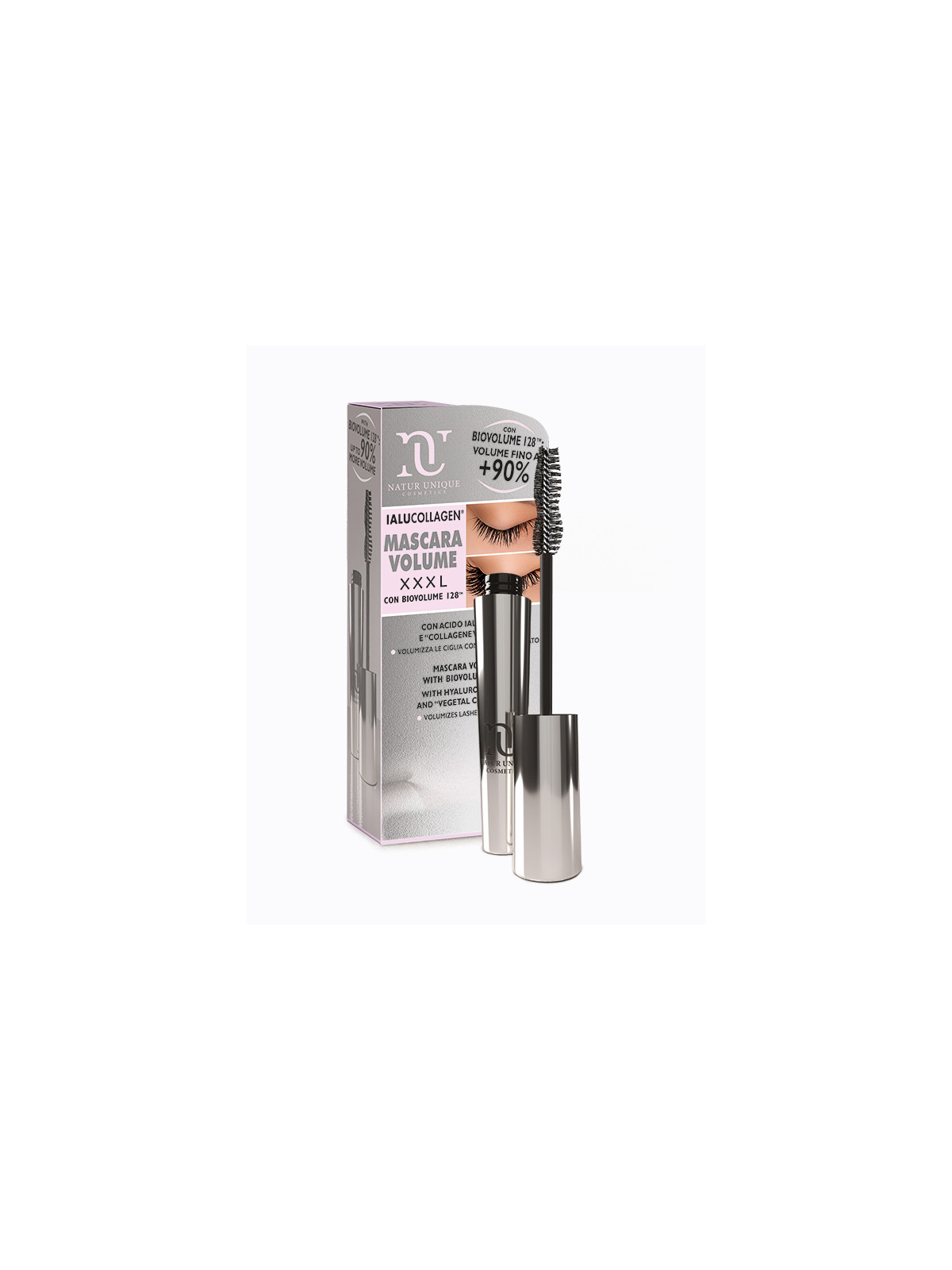 +90% di volume delle ciglia già dalla prima applicazione. Colore nero intenso. A base di cera d’api sintetica e di cera originata da olio d’oliva. Con Biovolume 128™, Acido Ialuronico e Collagene Vegetale 2. Clinicamente, dermatologicamente e oftalmologicamente testato. Testato per il Nichel.